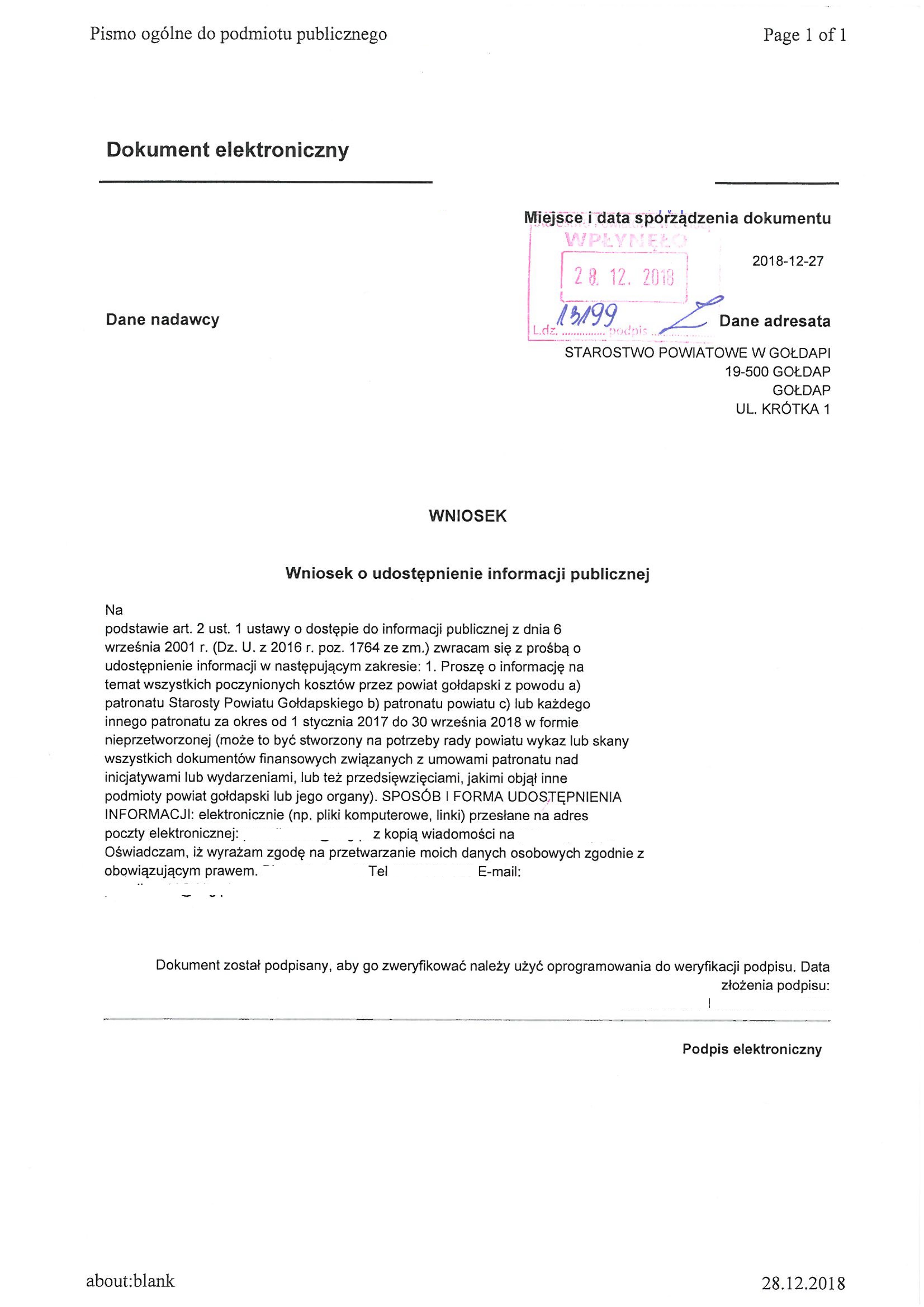 Wniosek o udostępnienie informacji publicznej